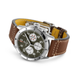 La lunette moletée sur son boîtier de 42 mm assure une prise en main optimale, même avec les mains gantées d’un pilote. Les bracelets en cuir de veau surpiqués rappellent les coutures présentes sur les équipements de vol classiques, tandis que le bracelet en acier inoxydable offre une alternative élégante. Les pilotes et autres voyageurs apprécieront sa lisibilité, sa facilité à être portée et son style discret. La Classic AVI est alimentée par un mouvement Calibre Breitling 23 certifié COSC, qui garantit une réserve de marche d’environ 48 heures.