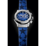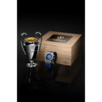 Bracelet : Caoutchouc noir et cuir de veau bleu avec logo de l’UEFA Champions League imprimé