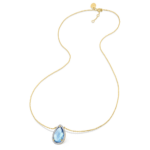 Collier, Topaze Swiss Blue, Diamants, Or Jaune