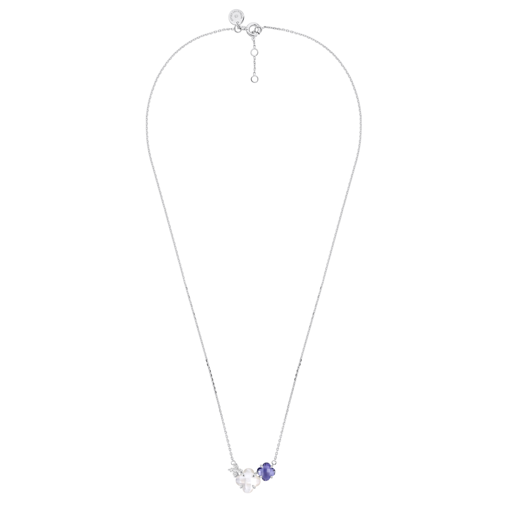 Collier, Iolite, Diamants, Nachre Blanche, Or Blanc