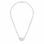 L’iconique motif Menottes dinh van se redécouvre en taille dans une version or blanc semi-pavé diamants. Le fermoir, placé au centre du bijou, est mis en lumière sur une chaîne Maillon signature de la Maison.