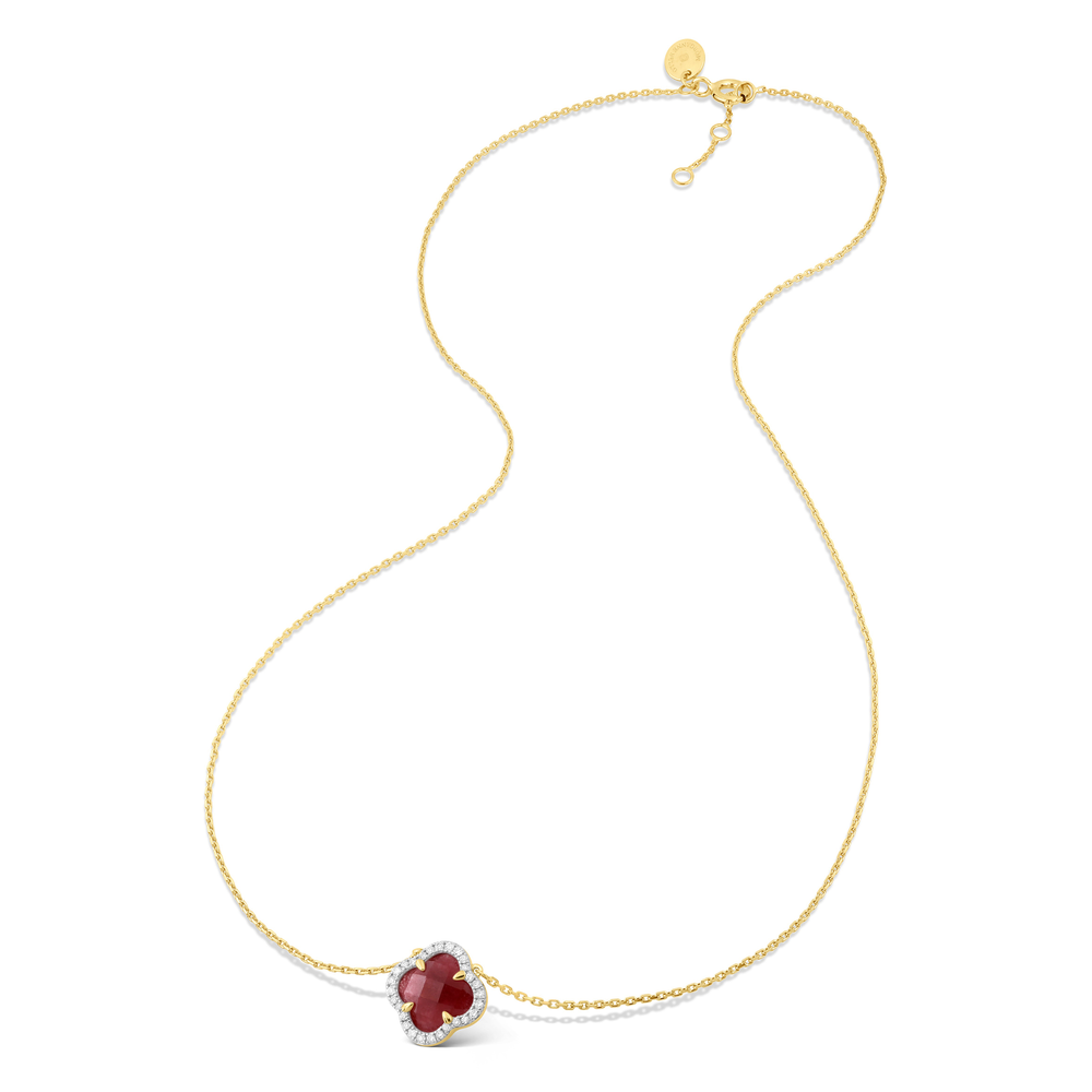 Collier, Mini Quartz Rouge, Diamants, Or Jaune