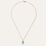 Collier et pendentif en or blanc et rose 18 K avec 1 prasiolite (≈9.5 ct) et 10 diamants blancs (≈0.1 ct) sur de l’or rose 18 K rhodié blanc.