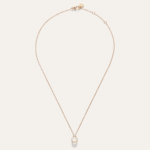 Ce pendentif Nudo Mini présente un quartz laiteux taillé en clessidra qui semble capturer le clair de lune en ses profondeurs. La pierre semble flotter en apesanteur sur sa chaîne en or rose, couronnée d'une délicate rangée de diamants blancs taille brillant. Les dimensions plus réduites du pendentif apportent une polyvalence supplémentaire au design iconique Nudo, tout en préservant sa présence sophistiquée. La pierre translucide crée un effet éthéré qui se métamorphose naturellement du jour à la nuit, incarnant la philosophie du luxe moderne selon Pomellato.
