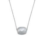 Une ligne d'une grande pureté, sans griffes, ni serti, une chaîne en or traverse délicatement la pierre.