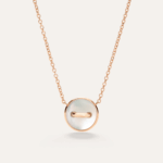 Collier avec pendentif en or rose 18 K orné de 39 diamants blancs (≈0,4 ct) sur de l’or rose 18 K rhodié blanc et 1 nacre blanche (≈1,6 ct).