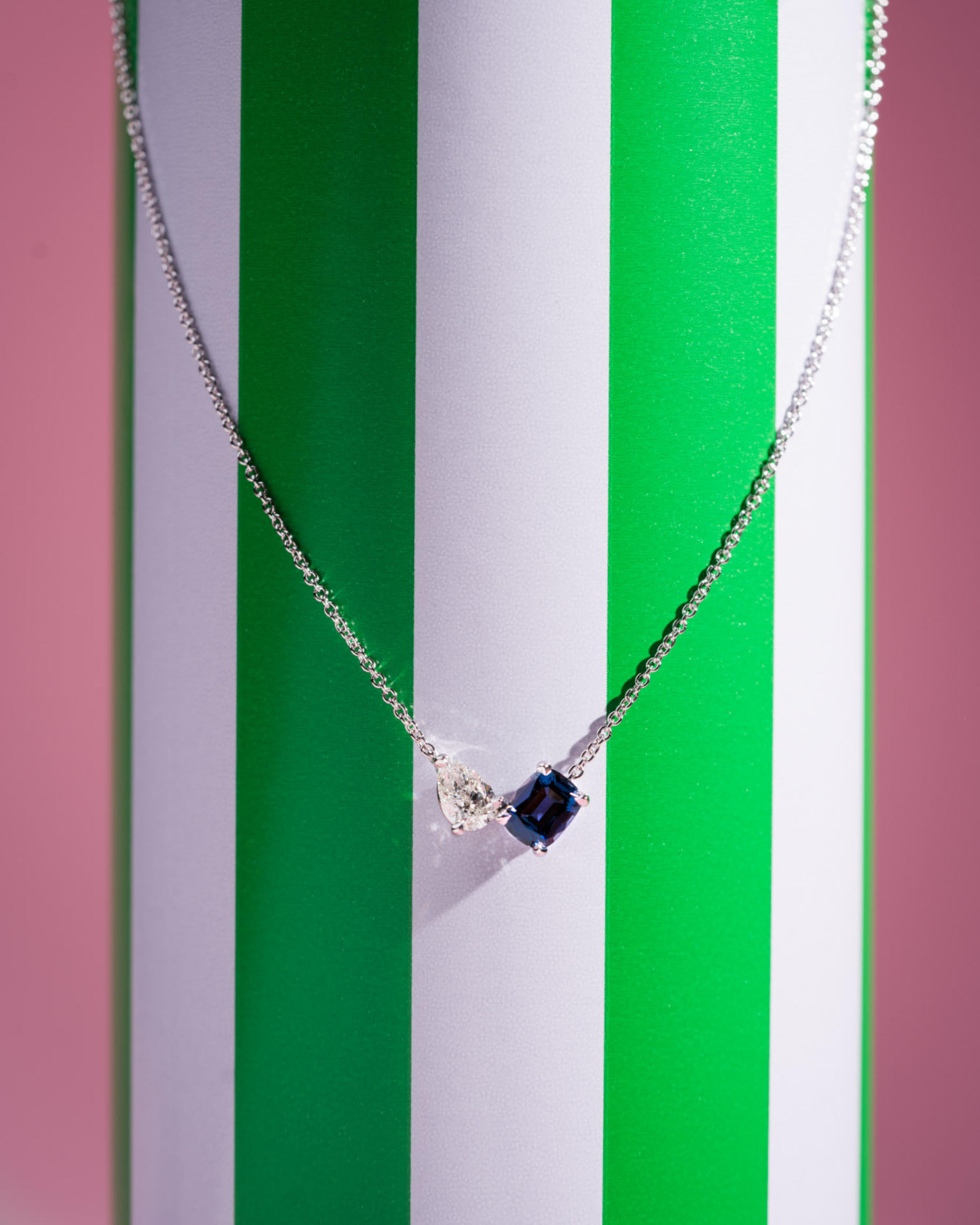 Collier Toi&Moi serti d'un diamant et d'un spinelle