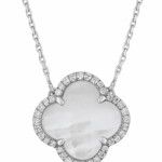 Collier, Nacre Blanche, Diamants, Or Blanc