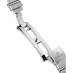 Calibre OMEGA 4061 : Mouvement à quartz avec fonction « Long Life » pour optimiser l’autonomie de la pile. Logo Omega rouge exclusif avec composants rhodiés et perlage.