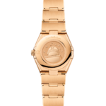 Le sublime cadran est composé d'un véritable fragment de météorite ferreuse qui a reçu un traitement PVD en or Moonshine™. Le motif naturel de la météorite est propre à chaque modèle, il n'y a donc jamais deux cadrans identiques. Des index en diamants et une étoile Constellation en or jaune 18K ornent également le cadran.