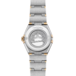 Calibre OMEGA 4061 : Mouvement à quartz avec fonction « Long Life » pour optimiser l’autonomie de la pile. Logo Omega rouge exclusif avec composants rhodiés et perlage.