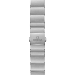Calibre OMEGA 4061 : Mouvement à quartz avec fonction « Long Life » pour optimiser l’autonomie de la pile. Logo Omega rouge exclusif avec composants rhodiés et perlage.