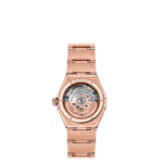 Fond transparent : Un fond transparent, souvent en saphir, permet de voir le mouvement à l’intérieur de la montre.