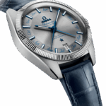 Enfin, cette montre dotée d'un bracelet en cuir bleu est entraînée par le calibre OMEGA Co-Axial Master Chronometer Calendrier Annuel 8922, doté d'une technologie antimagnétique révolutionnaire.