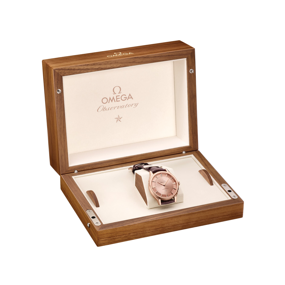 Entraînée par le calibre OMEGA 8915, c’est la première montre à deux aiguilles au monde à obtenir la certification Master Chronometer validée par METAS. Ce mouvement est visible à travers le fond de boîte en verre saphir, qui révèle un rotor squeletté en or Sedna™ 18K rehaussé d’un médaillon appliqué, décoré de l’observatoire signature des créations Constellation gravé au laser en finition contrastante. La montre est présentée dans un écrin spécial en marqueterie arborant le même emblème.