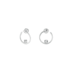 Cette paire de boucle d'oreilles issue de la collection Le Cube Diamant, joue avec les vides et les pleins, le contraste entre la rondeur du diamant, signe de spiritualité, et la quadrature du cerclage comme symbole de stabilité.