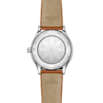 Elle repose sur un bracelet en cuir Novonappa doré fermé par une boucle Trésor. Elle est entraînée par le calibre OMEGA 4061, dissimulé par un fond de boîtier miroir exclusif orné du motif « Her Time » métallisé.