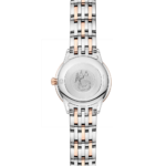 Calibre OMEGA 4061 : Mouvement à quartz avec fonction « Long Life » pour optimiser l’autonomie de la pile. Logo Omega rouge exclusif avec composants rhodiés et perlage.