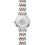 Ce modèle de 27,5 mm en acier inoxydable et or Sedna™ 18K arbore une lunette pavée de diamants et un cadran argenté au motif vertical aléatoire estampé dans une finition soleillée. L’affichage se distingue par ses aiguilles PVD de couleur or Sedna™, ainsi que par l’alternance de chiffres romains et d’index diamantés dans des supports en or Sedna™ 18K. Le design épuré de la montre est complété par un fond frappé d'un médaillon représentant le dieu Chronos.