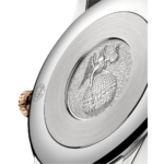 Calibre OMEGA 4061 : Mouvement à quartz avec fonction « Long Life » pour optimiser l’autonomie de la pile. Logo Omega rouge exclusif avec composants rhodiés et perlage.