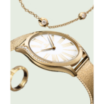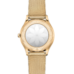 Montée sur un bracelet milanais en or Moonshine™ 18K, cette montre revêt un motif rappelant la soie et une boucle déployante exclusive. Elle est animée par le calibre OMEGA 4061, dissimulé par le fond miroir poli orné du motif « Her Time » métallisé.