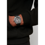 Montre El Primero 21 avec mouvement de chronographe haute fréquence affichant les 1/100e de seconde, logée dans un boîtier DEFY en titane de 44 mm et rehaussée d’un bracelet en caoutchouc texturé noir. Son mouvement automatique est doté de deux échappements indépendants à haute fréquence oscillant à 50Hz pour la fonction chronographe et à 5Hz pour le chronométrage.