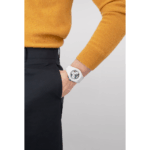 La DEFY 21 Chroma II est une version haute en couleurs du chronographe à haute fréquence El Primero 21 affichant les 1/100e de seconde. Elle est dotée d’un boîtier de 44 mm en céramique blanche mate avec mouvement couleur arc-en-ciel visible à travers le cadran ajouré, lui-même ponctué d’index à effet dégradé. Le bracelet en caoutchouc blanc revêt également une surpiqûre aux couleurs de l’arc-en-ciel.