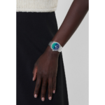 La DEFY Midnight Borealis possède un boîtier en acier de 36 mm avec lunette sertie de diamants et un cadran gravé guilloché avec dégradé vertical allant du vert au bleu. La montre DEFY Midnight pour femmes est dotée d’un bracelet en acier et de plusieurs bracelets de rechange qui peuvent facilement être intervertis sans l’aide du moindre outil. Elle est animée par le mouvement automatique de Manufacture ELITE.