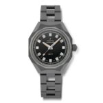 Une réinterprétation moderne du tout premier modèle de montre-bracelet DEFY de 1969. Monté sur un bracelet échelle en titane, ce modèle est doté d’un boîtier en titane au fini mat octogonal et robuste, avec une lunette à 14 côtés. Le cadran noir mat apporte une touche résolument rétro. Il est animé par le mouvement automatique de Manufacture ELITE 670.