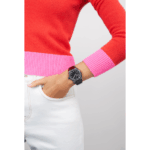 Montre DEFY Skyline dotée d’un boîtier octogonal en céramique noire de 41 mm rehaussé d’une lunette à facettes, avec un cadran noir à motif soleillé revisitant l’emblématique étoile à quatre branches de ZENITH. Animée par le mouvement de manufacture automatique à haute fréquence El Primero 3620 avec le tout premier indicateur au 1/10e de seconde. Livrée avec un bracelet en céramique; un deuxième bracelet en caoutchouc à motifs noirs est inclus pour profiter pleinement de l’interchangeabilité.