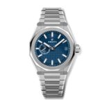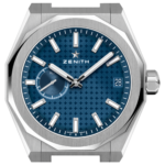 Montre DEFY Skyline dotée d’un boîtier octogonal en acier de 41 mm rehaussé d’une lunette à facettes, avec un cadran bleu à motif soleillé revisitant l’emblématique étoile à quatre branches de ZENITH. Animée par le mouvement de manufacture automatique à haute fréquence El Primero 3620 avec le tout premier indicateur au 1/10e de seconde. Livrée avec un bracelet en acier; un deuxième bracelet en caoutchouc à motifs bleus est inclus pour profiter pleinement de l’interchangeabilité.