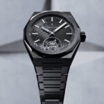 Montre DEFY Skyline Tourbillon dotée d’un boîtier octogonal en céramique noire de 41 mm rehaussé d’une lunette à facettes, avec un cadran noir à motif soleillé revisitant l’emblématique étoile à quatre branches de ZENITH. Le cadran ajouré laisse apparaître le tourbillon 60 secondes avec une cage en forme d'étoile. Animée par le mouvement de manufacture automatique à haute fréquence El Primero 3630 avec une réserve de marche de 60 heures. Bracelet en céramique interchangeable et bracelet en caoutchouc à motifs noirs.