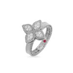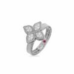 Fleur de princesse bague en or blanc 750 avec motif d'une fleure sertie de diamants