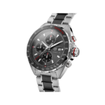 A chronographe de sport automatique extrêmement précis en acier inoxydable et en céramique haute technologie. Conçu pour les amateurs de vitesse, son élégant cadran gris présente des touches flamboyantes et des détails en Super-LumiNova® pour une lisibilité optimale.