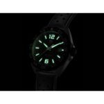 Montre de sport pour homme avec un cadran noir dans un boîtier en acier brossé. Le boîtier de 41 mm est en acier inoxydable brossé, assorti d'une lunette tournante unidirectionnelle en acier PVD noir et d'une couronne vissée. Son allure est sportive, urbaine et audacieuse.