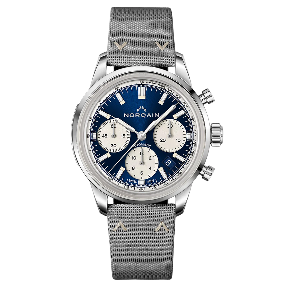 Plaquette NORQAIN gravée en acier inoxydable 316L sur le côté gauche du boîtier