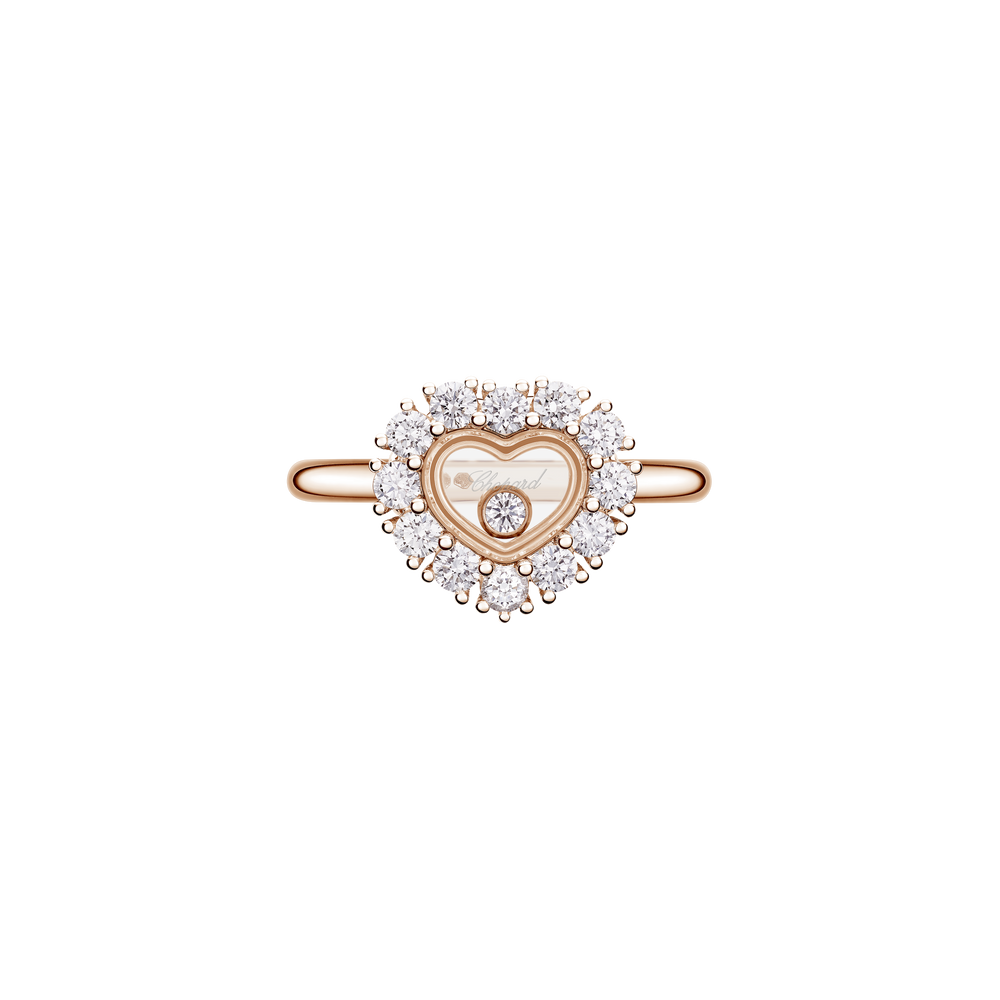 La bague coeur or rose et diamant Happy Diamonds est aussi unique que ludique. Les diamants mobiles sont entièrement libres entre deux glaces saphir, ce qui leur permet de se déplacer sans contrainte, et à travers ce mouvement de renforcer leur éclat. Little Diamonds Do Great Things.