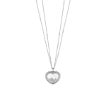 Le pendentif coeur or blanc et diamant Happy Diamonds est aussi unique que ludique. Les diamants mobiles sont entièrement libres entre deux glaces saphir, ce qui leur permet de se déplacer sans contrainte, et à travers ce mouvement de renforcer leur éclat. Little Diamonds Do Great Things.