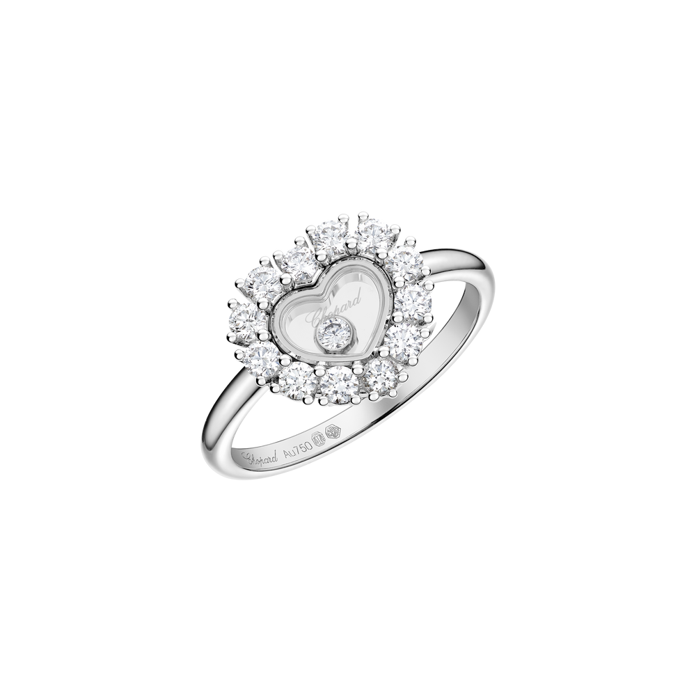 La bague coeur or blanc et diamant Happy Diamonds est aussi unique que ludique. Les diamants mobiles sont entièrement libres entre deux glaces saphir, ce qui leur permet de se déplacer sans contrainte, et à travers ce mouvement de renforcer leur éclat. Little Diamonds Do Great Things.