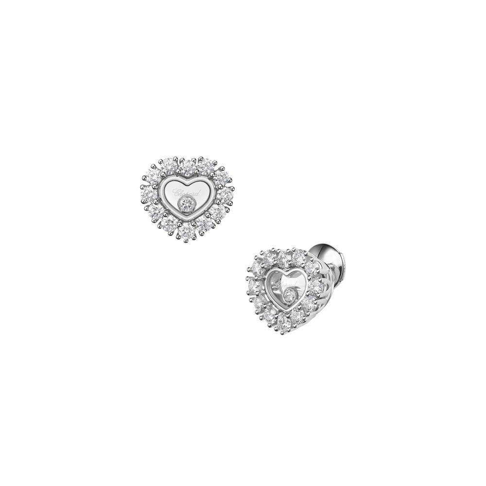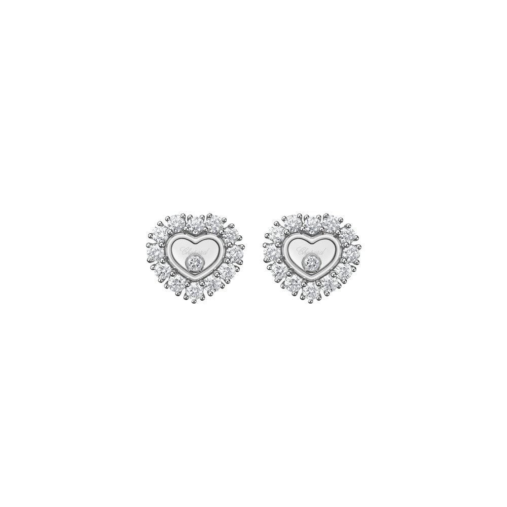Les boucles d'oreilles coeur or blanc et diamant Happy Diamonds sont aussi uniques que ludiques. Les diamants mobiles sont entièrement libres entre deux glaces saphir, ce qui leur permet de se déplacer sans contrainte, et à travers ce mouvement de renforcer leur éclat. Little Diamonds Do Great Things.