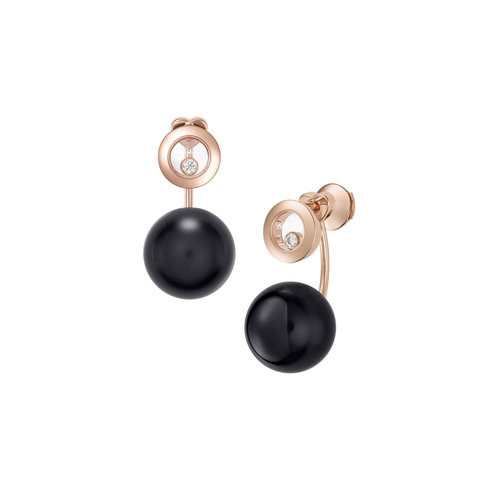Les boucles d'oreilles en diamant et onyx Happy Diamonds sont aussi uniques que ludiques. Les diamants mobiles sont entièrement libres entre deux glaces saphir, ce qui leur permet de se déplacer sans contrainte, et à travers ce mouvement de renforcer leur éclat. Little Diamonds Do Great Things.