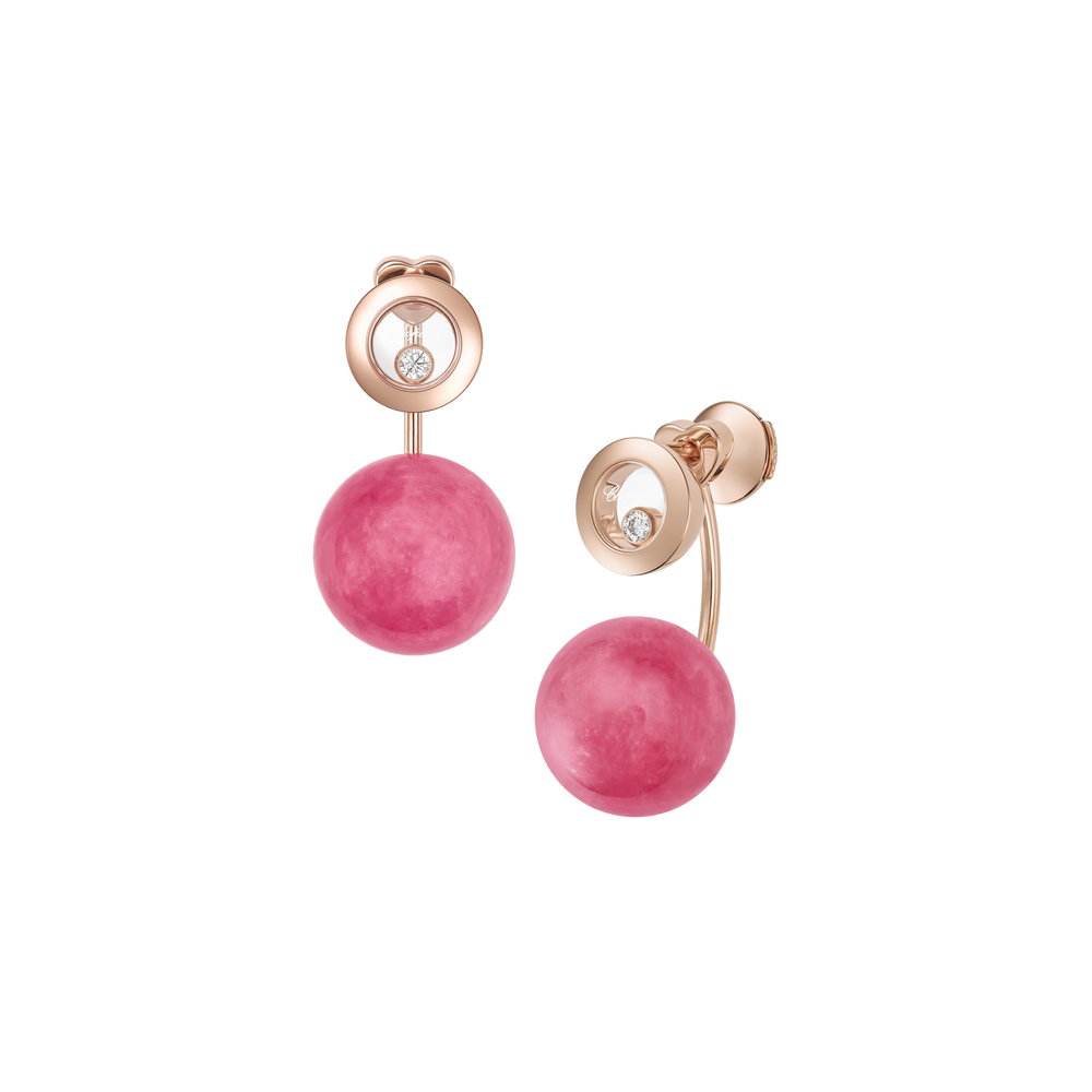 Les boucles d'oreilles en diamant et rhodochrosite Happy Diamonds sont aussi uniques que ludiques. Les diamants mobiles sont entièrement libres entre deux glaces saphir, ce qui leur permet de se déplacer sans contrainte, et à travers ce mouvement de renforcer leur éclat. Little Diamonds Do Great Things.