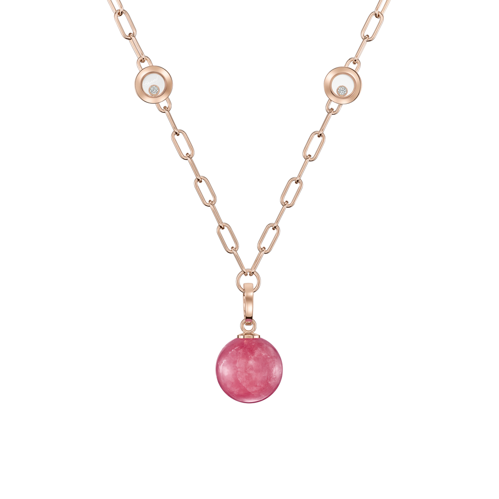 Le pendentif en diamant et rhodochrosite Happy Diamonds est aussi unique que ludique. Les diamants mobiles sont entièrement libres entre deux glaces saphir, ce qui leur permet de se déplacer sans contrainte, et à travers ce mouvement de renforcer leur éclat. Little Diamonds Do Great Things.