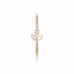 Le papillon, emblème par excellence de légèreté, a soufflé aux joncs en diamant Happy Hearts Wings toute sa délicatesse et sa force symbolique. Il trouve dans les lignes de cette collection de bijoux de luxe un aboutissement d’un grand raffinement, en résonance avec les symboles de la Maison Chopard. Deux cœurs en nacre et or rose, disposés comme des ailes de papillon, sont suspendus à un cœur dans lequel se love un diamant mobile. Little Diamonds Do Great Things