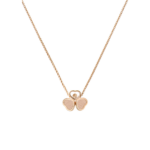 Le papillon, emblème par excellence de légèreté, a soufflé à Happy Hearts Wings toute sa délicatesse et sa force symbolique. Il trouve dans les lignes de la collection un aboutissement d’un grand raffinement, en résonance avec les symboles de la Maison Chopard. Deux cœurs en or, disposés comme des ailes de papillon, sont suspendus à un cœur dans lequel se love un diamant mobile. Little Diamonds Do Great Things