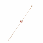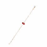 Le papillon, emblème par excellence de légèreté, a soufflé aux bracelets chaîne en diamant Happy Hearts Wings toute sa délicatesse et sa force symbolique. Il trouve dans les lignes de cette collection de bijoux de luxe un aboutissement d’un grand raffinement, en résonance avec les symboles de la Maison Chopard. Deux cœurs en pierre rouge et or rose, disposés comme des ailes de papillon, sont suspendus à un cœur dans lequel se love un diamant mobile. Little Diamonds Do Great Things
