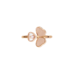 Le papillon, emblème par excellence de légèreté, a soufflé à Happy Hearts Wings toute sa délicatesse et sa force symbolique. Il trouve dans les lignes de la collection un aboutissement d’un grand raffinement, en résonance avec les symboles de la Maison Chopard. Deux cœurs en or, disposés comme des ailes de papillon, sont suspendus à un cœur dans lequel se love un diamant mobile. Little Diamonds Do Great Things
