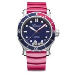 Bracelet : caoutchouc rouge (relief vague), tissu bleu (mat)