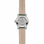 Cadran : Cadran en nacre texturée vert clair orné d’index sertis, centre guilloché encadré d’un passepoil décoratif serti et de diamants mobiles