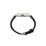 Bracelet : Bracelet haut de gamme en cuir de veau noir avec surpiqûres ton sur ton